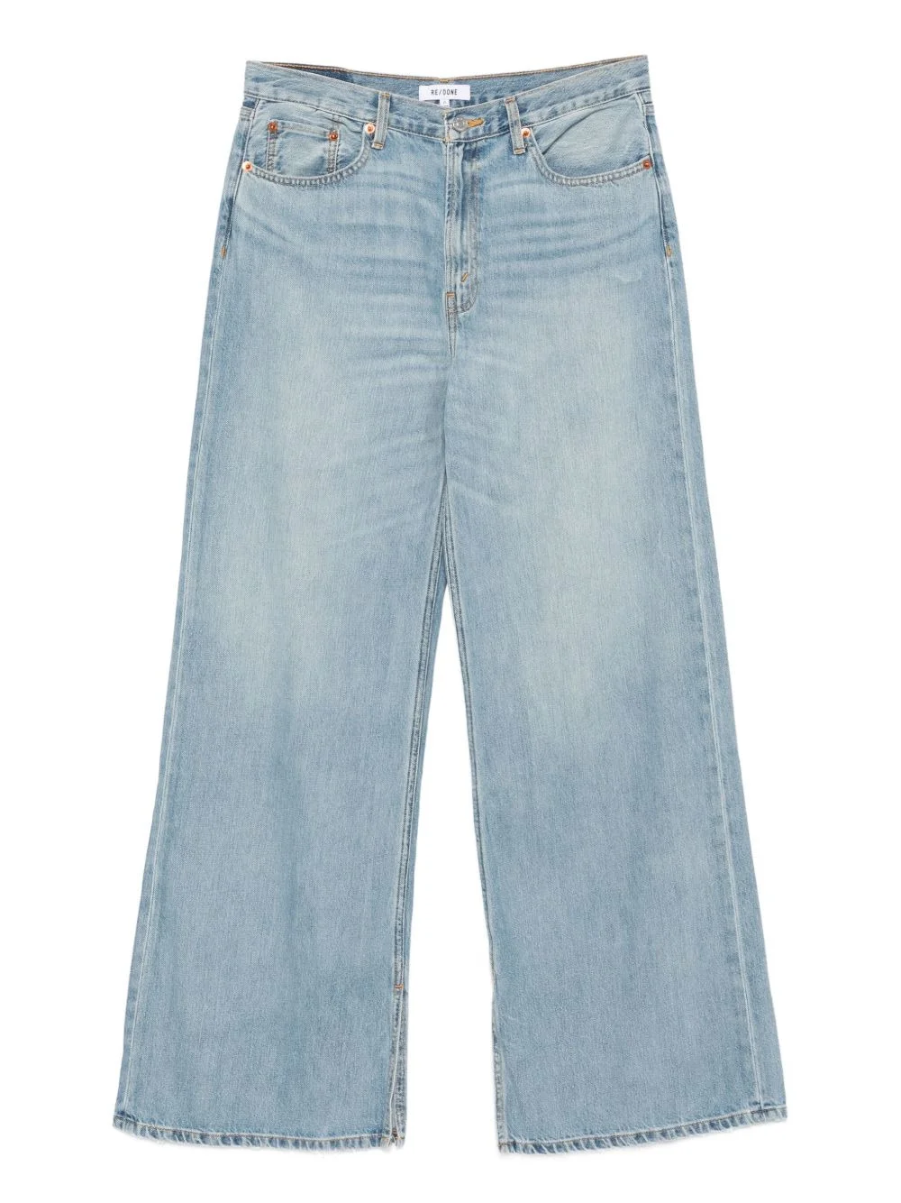 five-pocket design wide-leg jeans Highlights - Blue - Wide leg - Five-pocket design - Button fly - Frayed hem Imported Composition Lining: Polyester 65%, Cotton 35% Outer: Cotton 64%, Lyocell 36% SIZE & FIT Model measurements Height 5 ft 10 in(1.77 m) Bust/Chest 33.07 in(84 cm) Hips 37 in(94 cm) Waist 24.8 in(63 cm) Washing instructions Machine Wash