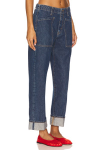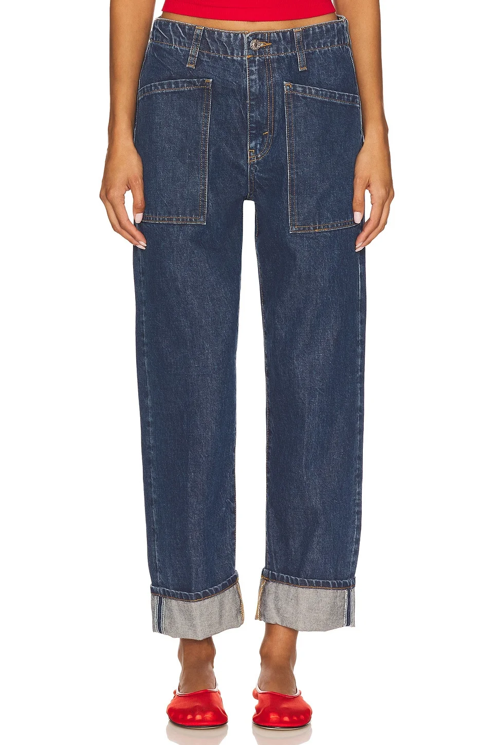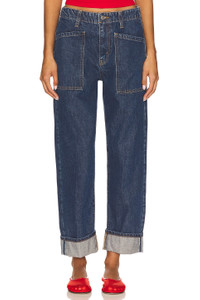 - Self: 100% cotton Lining: 65% polyester 35% cotton - Machine wash cold.4-pocket styling - Rigid denim with pleated detail.17" at the knee narrows to 16.5" at the leg opening - Revolve Style No. REDR-WJ357 - Manufacturer Style No. 188-03WBENDJN