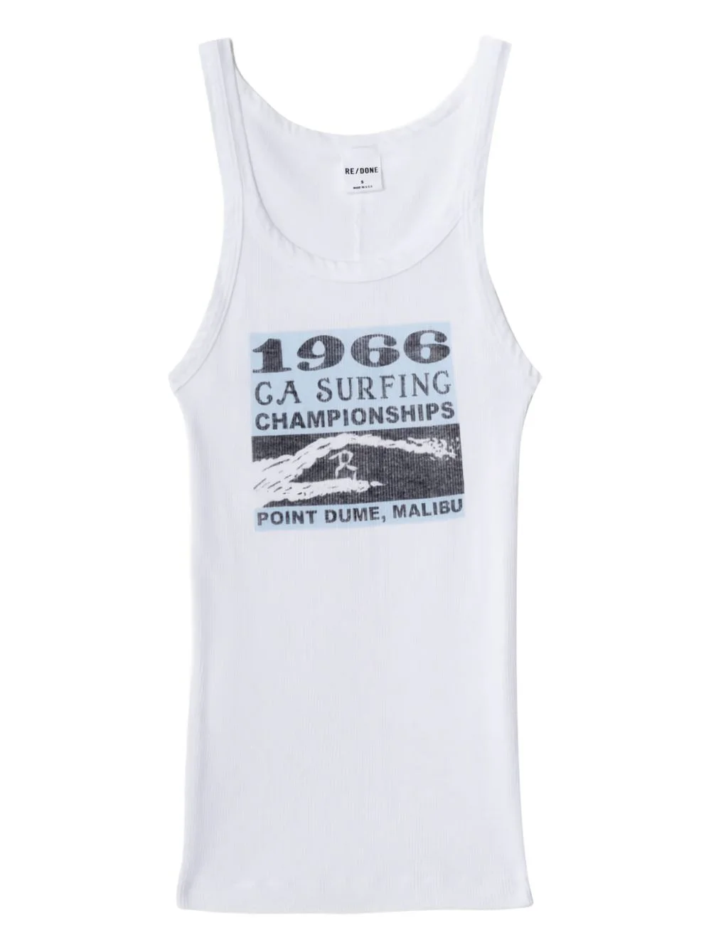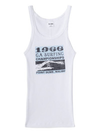 ribbed graphic tank Highlights - White - Ribbed fabric - Graphic print - Scoop neck - Sleeveless - Straight hem Made in United States Composition Cotton 100% Washing instructions Machine Wash