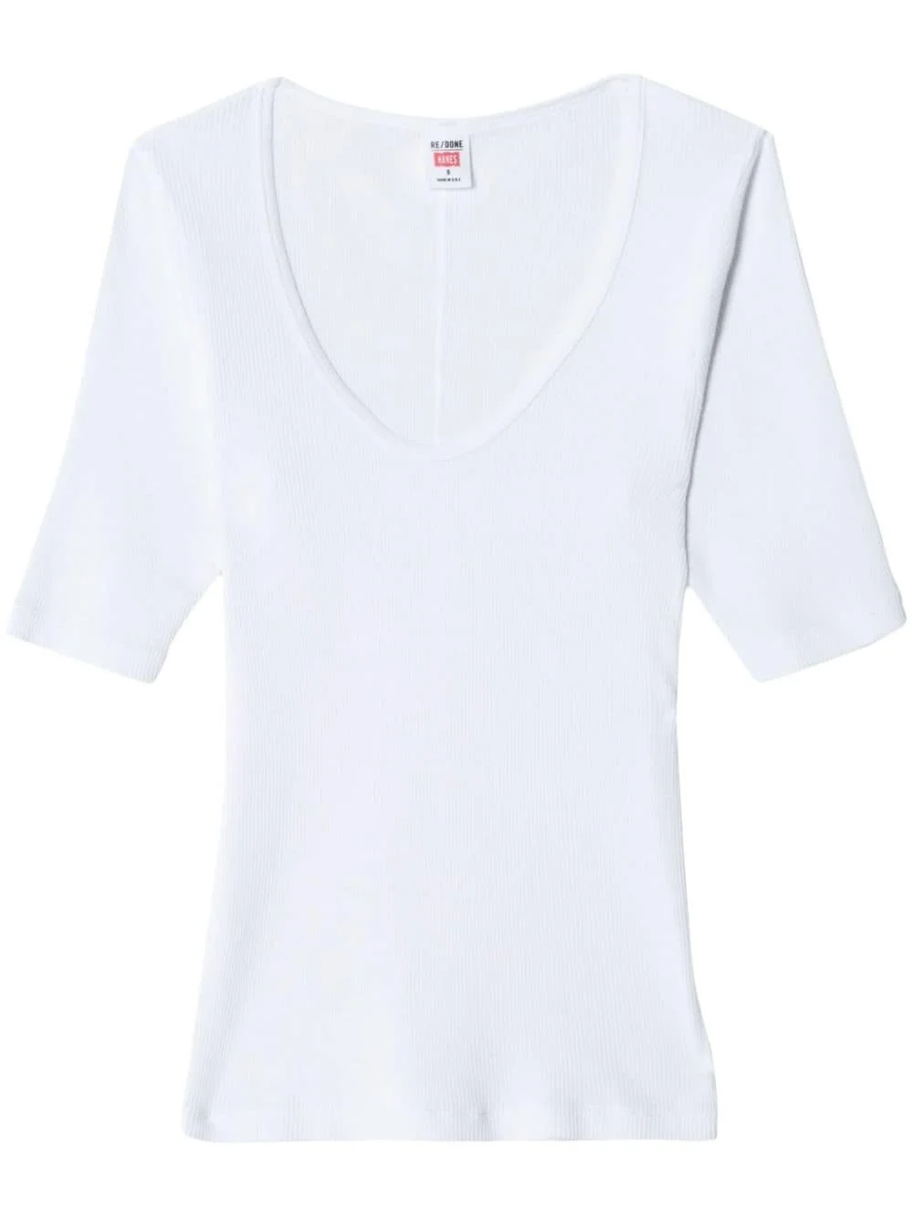 scoop-neck cotton T-shirt Highlights - Optical white - Cotton - Ribbed knit - Scoop neck - Short sleeves - Straight hem Made in United States Composition Cotton 100% SIZE & FIT Measurement SLEEVE LENGTH 10 in(25.4 cm) LENGTH 20 in(50.8 cm) WAIST 22 in(55.9 cm) BUST 22 in(55.9 cm) Washing instructions Hand Wash