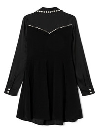 Western Yoke dress Highlights - Black - Panelled design - Western style - Front press-stud fastening - Notched collar - Silver-tone stud detailing - Long sleeves - Press-stud fastening cuffs - Pleat detailing - Curved hem - Thigh-length Made in Italy Composition Viscose 99%, Elastane 1% Washing instructions Read Manufacturer Guidelines