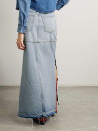 EDITORS'NOTES RE/DONE's skirt gives a nod to utilitarian styles of the early 2000s. Cut from panels of organic denim in a light 'Ripped Tide' wash, it's gently frayed at the pockets and along the maxi hem, which is slit for comfort. Wear yours with a graphic tee and chunky boots. SIZE & FIT - Fits true to size, take your normal size - Maxi-length, designed to be worn at the waist - Mid-weight, non-stretchy fabric - Model is 180cm/ 5’11” and is wearing a size 26 DETAILS & CARE - Light-blue organic denim - Button and concealed zip fastening at front - 100% organic cotton - Machine wash - Designer wash: Ripped Tide