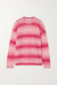 EDITORS'NOTES RE/DONE's sweater is knitted with touches of mohair and alpaca and brushed for a soft, fuzzy handle. It's patterned with tonal-pink stripes that fade into one another and has a slouchy shape. Layer a tank underneath to temper the sheer finish. SIZE & FIT - Fits true to size, however those who are between sizes should take the smaller size - Designed for a loose fit - Lightweight knit - Model is 177cm/ 5'10" and is wearing a size XSmall DETAILS & CARE - Tonal-pink and red mohair, alpaca and polyamide-blend - Slips on - 35% mohair, 35% alpaca, 30% polyamide - Dry clean