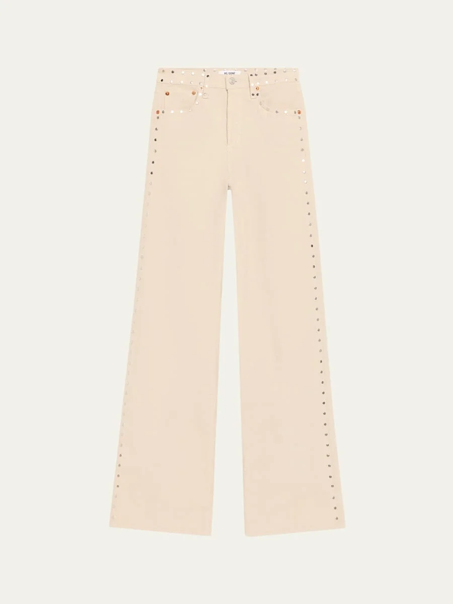 RE/DONE 70sinspired flared pants finished with studded trim in comfortstretch corduroy Approx. 33" inseam High rise Fivepocket style Wide fit Full length Button/zip fly; belt loops Cotton/elastane Machine wash cold Imported