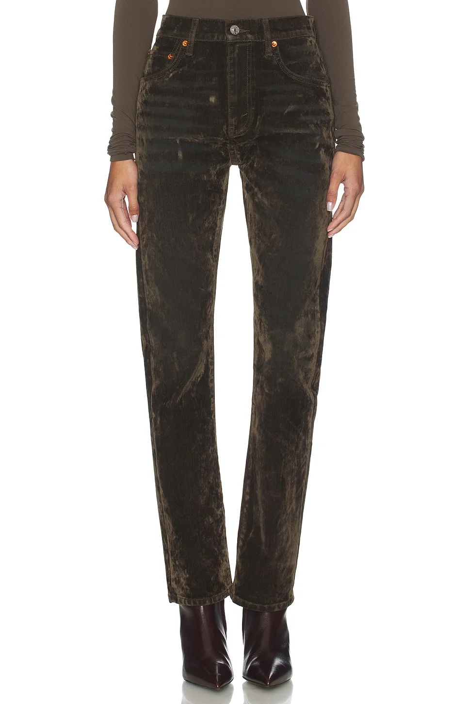 - Self: 54% cotton 26% recycled polyester 18% rose uniacke fabric 2% elastane Lining: 65% polyester 35% cotton - Made in Turkey - Machine wash cold - Straight zip fly and button closure.5-pocket styling - Midweight crushed velvet fabric - Intentional distressing and fading throughout - Leg opening measures approx 7.5" - Revolve Style No. REDR-WJ385 - Manufacturer Style No. 513-03WBLONDI