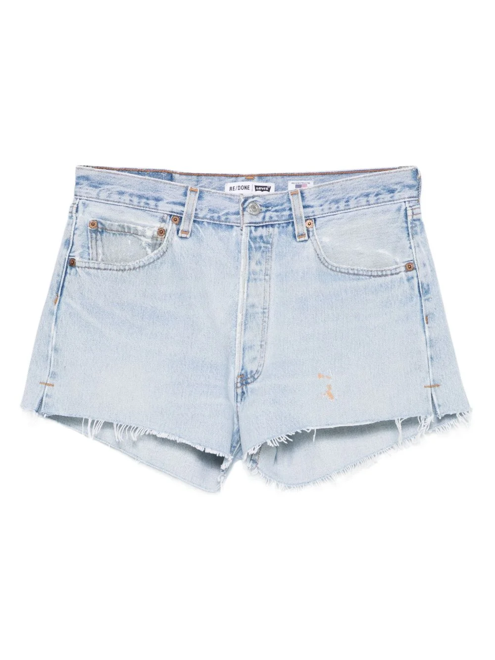 frayed-edges denim shorts Highlights - Light blue - Frayed edges - Distressed detail - Five-pocket styling - Button fly Imported Composition Fabric 100% SIZE & FIT Model measurements Height 5 ft 9 in(1.75 m) Bust/Chest 34.64 in(88 cm) Hips 36.61 in(93 cm) Waist 26.37 in(67 cm) Washing instructions Read Manufacturer Guidelines