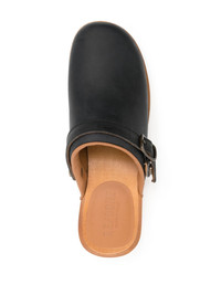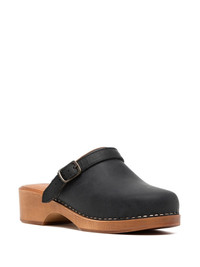 wooden-platform leather clogs Highlights - Black - Calf leather - Round toe - Slip-on style - Open back - Buckle-strap fastening - Branded leather insole - Wooden platform sole - Rubber sole Made in Italy Composition Rubber 100%, Calf Leather 100% SIZE & FIT Measurement HEEL 1.85 in(4.7 cm) Sole height 0.62 in(1.6 cm)