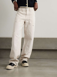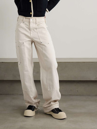 EDITORS'NOTES Inspired by workwear, RE/DONE's jeans are detailed with panels on each leg. They're cut from off-white denim and embellished with silver-tone rivets on the seams. The raw hems add to their relaxed, undone feel. SIZE & FIT Model measurements: - Fits true to size, take your normal size - Mid-rise, boyfriend style - Mid-weight, non-stretchy denim - Size 26 jeans have an inside leg of 33"/ 84cm - Model is 175cm/ 5'9" and is wearing a size 26 - Bust: 79cm/ 31" - Waist: 64cm/ 25" - Hip: 92cm/ 36" DETAILS & CARE - Off-white denim - Button and partially concealed zip fastening - 100% cotton - Machine wash - Designer color: Vintage White