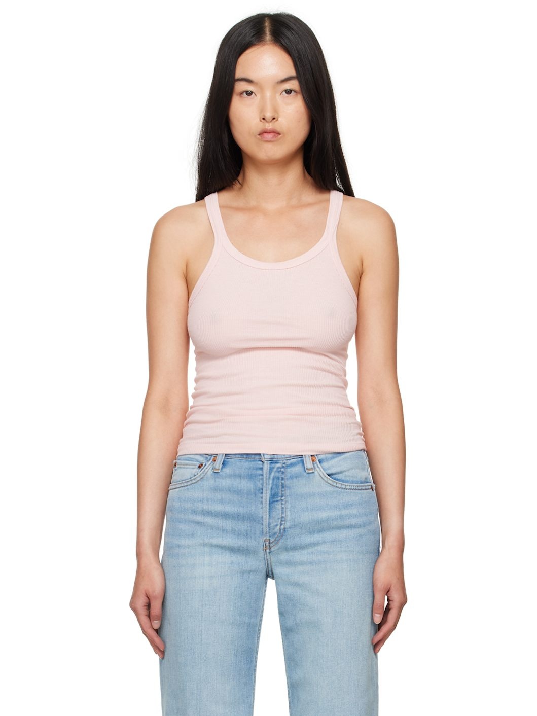 Cotton ribbed jersey tank top. Scoop neck. Part of the Re/Done x Hanes collaboration. Supplier color: Peony