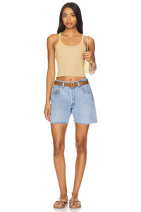 - 100% cotton - Made in USA - Machine wash - Button fly closure.5-pocket design - Rigid denim with raw cut hem - Each Re/Done style is unique - Due to the use of reclaimed vintage fabrics, details and colors vary throughout to ensure that each piece is uniquely its own - .Shorts measure approx 14" in length - Revolve Style No. REDR-WF62 - Manufacturer Style No. 001-04WMRBYSH