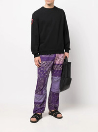 bandana-print straight trousers cotton purple bandana print high waist elasticated waistband straight leg drawstring hem When buying this unisex item, keep in mind that it is graded in standard men's sizing. Imported Composition Cotton 100% SIZE & FIT Model measurements Height 5 ft 10 in(1.79 m) Bust/Chest 31.49 in(80 cm) Hips 35.03 in(89 cm) Waist 24.4 in(62 cm) FittingInformation This piece is unisex. Please take care when selecting your size Designed for a loose fit for men and an oversized fit for women Made with a mid-weight non-stretch fabric Washing instructions Hand Wash