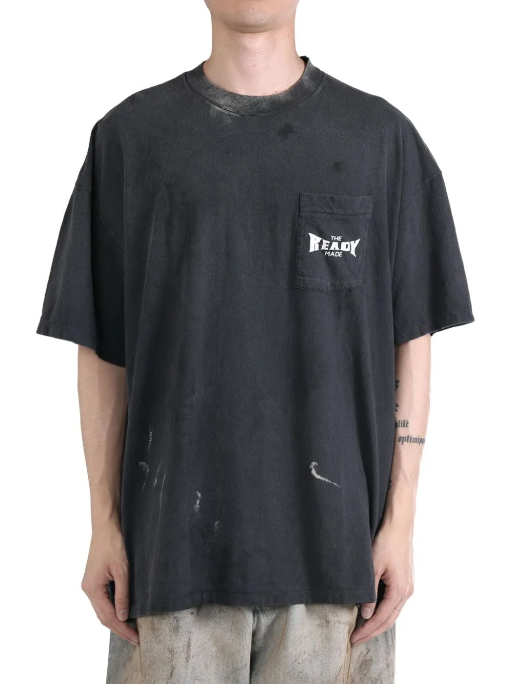 logo-print T-shirt Highlights - Dark grey - Cotton - Distressed effect - Logo print at the chest - Round neck - Chest patch pocket - Short sleeves - Straight hem - When buying this unisex item, keep in mind that it is graded in standard men's sizing. Imported Composition Cotton 100%