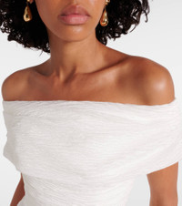 Product Details - Material: 64% nylon, 36% polyester - Care instructions: dry clean - Made in China - Designer color name: Ivory - Item color: ivory - Item number: P01039764 Size & Fit - True to size - Off-the-shoulder - Internal boned corset for support - Cinched waist - Non-stretchy fabric - The model seen in the picture is 178cm-5'10" and wearing a size UK 6