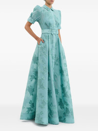 Benette short sleeve gown Highlights - Teal blue - Front button fastening - Detachable and adjustable waist belt - Floral embroidery - Two side slit pockets Imported Composition Polyester 54%, Metallized Polyester 30%, Nylon 16% Washing instructions Dry Clean Only