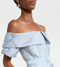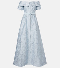 Every style from Rebecca Vallance is characterized by glitz and glamour. Shaped into an off-shoulder silhouette, the Anneli bridal gown is expertly crafted from cotton-blend brocade with a matching square-buckle belt. Product Details - Material: 53% cotton, 47% polyester - Care instructions: dry clean - Made in China - Designer color name: Soft Blue - Item color: blue - Lining: 97% polyester, 3% elastane - Closure: concealed zipped back - Detachable belt - Pockets: side slit pockets - Item number: P01111818 Size & Fit - True to size - Oversized shoulders - Off-the-shoulder - Cinched waist - Adjustable at the waist - Non-stretchy fabric - The model seen in the picture is 178cm-5'10" and wearing a size UK 6
