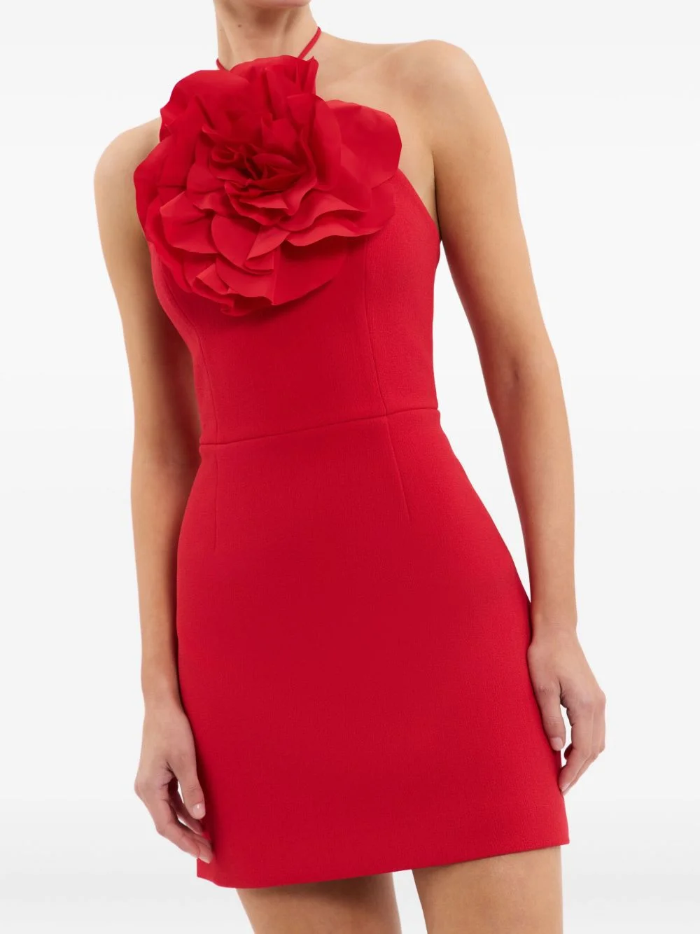 halterneck rose-embellished mini cocktail dress Highlights - Red - Halterneck - Large rose embellishment - Sleeveless - Mini length - Straight hem Imported Composition Polyester 98%, Elastane 2% Washing instructions Dry Clean Only