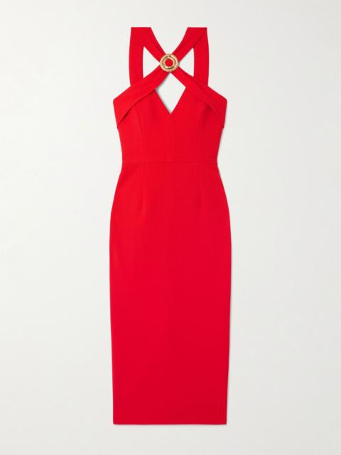 Cameron button-embellished crepe mini dress Red