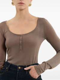 Darcey body Highlights - Beige - Front button placket - Scoop neck - Long sleeves - Just a reminder that this piece must be tried on over your own garments. Imported Composition Viscose 100%