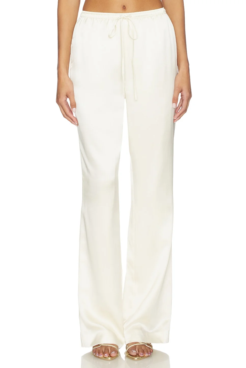 - Self: 100% silk Lining: 97% polyester 3% elastane - Made in China - Dry clean only - Drawstring closure - Double-lined pant leg - Flowy silk material.20" at leg opening - Revolve Style No. REBR-WP7 - Manufacturer Style No. 2504-5294
