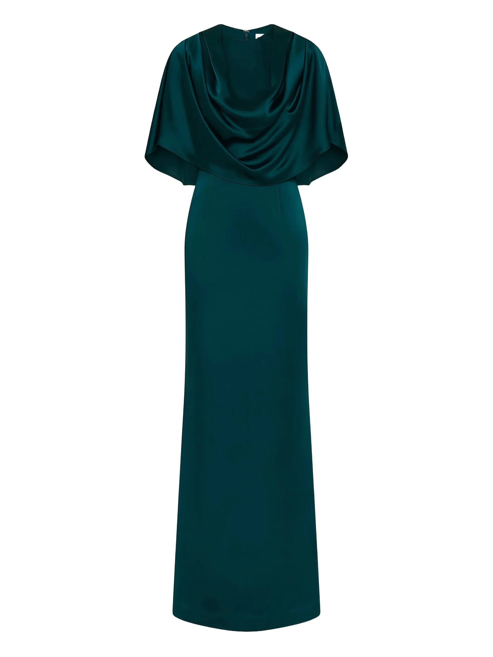 - forest green - cape detail - back zip fastening - back slit Materials & Product Care Acetate 43%, Polyester 57%