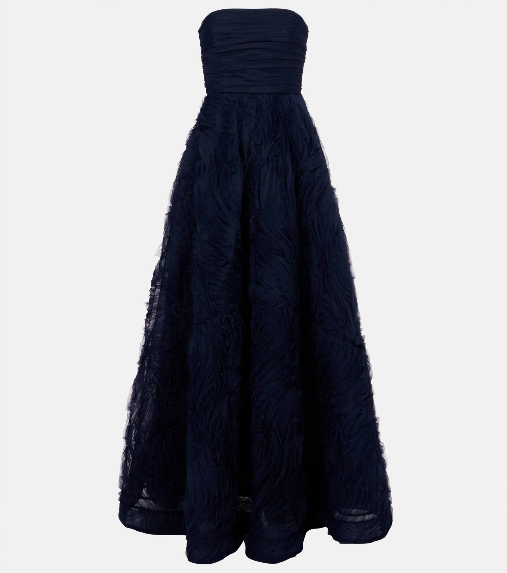 Established as the go-to brand for eye-catching occasionwear, every style from Rebecca Vallance is characterized by glitz and glamour. The Fernanda gown features a strapless design, while its organza finish adds a fairytale touch. Product Details - Material: 100% nylon - Care instructions: dry clean - Made in China - Designer color name: Navy - Item color: blue - Lining: 97% polyester, 3% elastane - Lining II: 100% nylon - Material II: 100% nylon - Material III: 92% polyester, 8% elastane - Hook-fastening built-in bustier - Item number: P01078329 Size & Fit - True to size - For larger bust sizes we recommend taking one size up - Strapless - Internal boned corset for support - Cinched waist - Non-stretchy fabric - The model seen in the picture is 178cm-5'10" and wearing a size UK 6