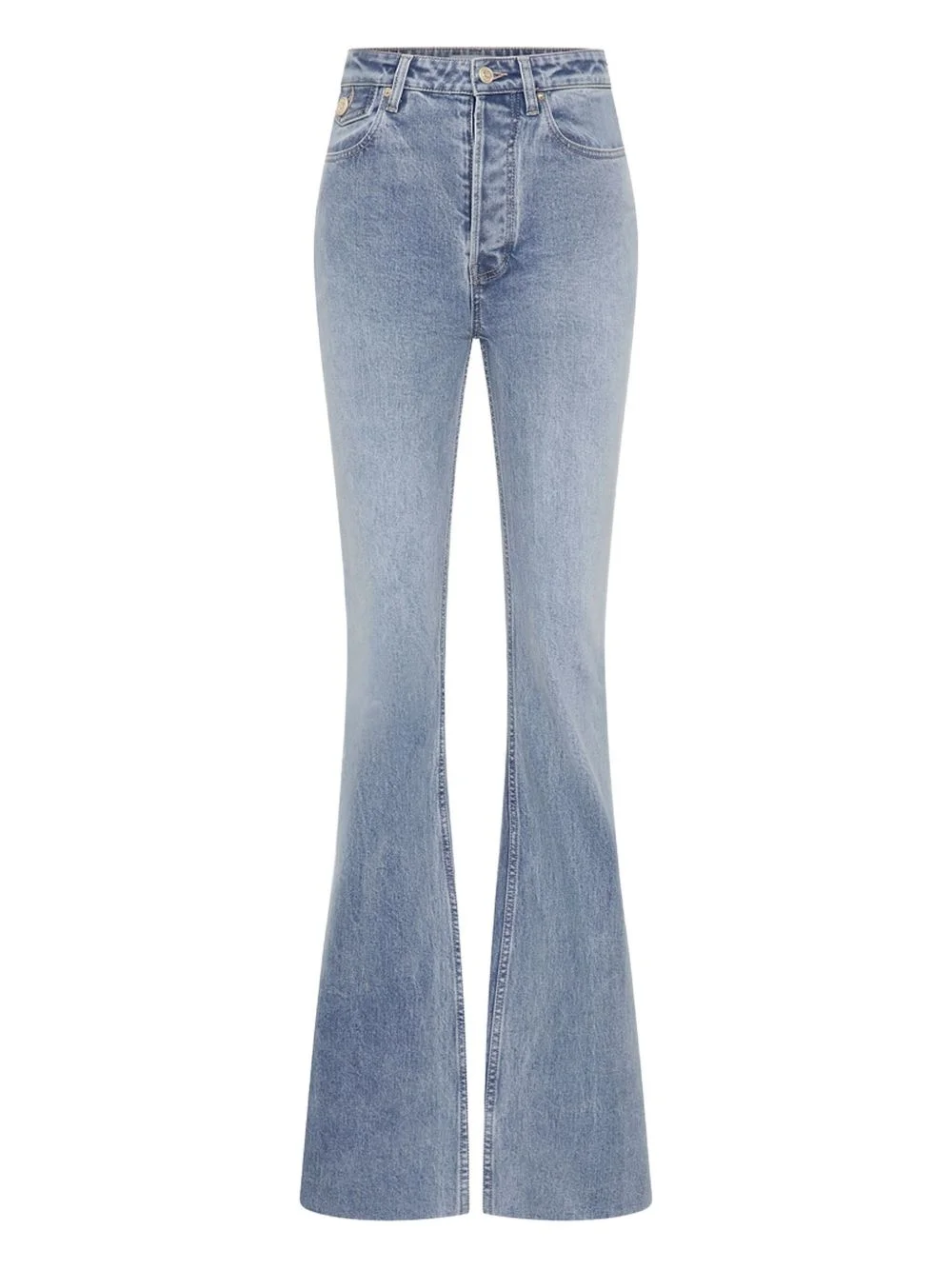 flared jeans Highlights - Light blue - High waist - Button fly - Five-pocket - Flared leg Imported Composition Cotton 97%, Polyurethane 3% Washing instructions Read Manufacturer Guidelines