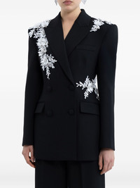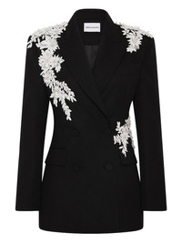 floral-embellishment double-breasted blazer Highlights - Black - Floral embellishment - Double-breasted - Button fastening - Padded shoulders - Long sleeves Imported Composition Polyester 54%, Virgin Wool 44%, Elastane 2% Washing instructions Dry Clean Only