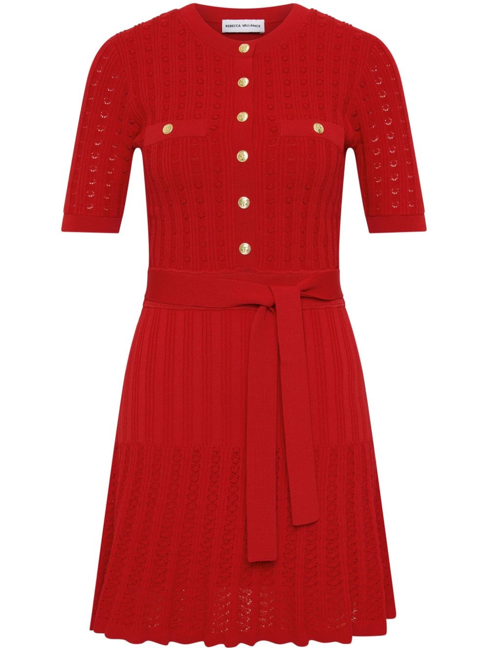 Lucy mini dress Highlights - Bright red - Pointelle knit - Front button fastening - Round neck - Short sleeves - Gold-tone buttons - Two chest welt pockets - Detachable and adjustable waist belt - A-line skirt - Straight hem - Thigh-length Imported Composition Viscose 63%, Nylon 37%