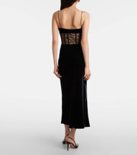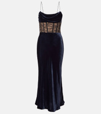 Eschew trends in favour of Rebecca Vallance’s timelessly elegant and effortlessly feminine designs. Made from velvet with lace trims, the Minerva gown is complete with a bustier bodice and a cowl neckline. Product Details - Material: 82% viscose, 18% silk - Care instructions: dry clean - Made in China - Designer color name: Navy - Item color: blue - Lining: 100% polyester - Lining II: 90% polyester, 10% elastane - Material II: 100% nylon - Material III: 100% polyester - Boning - Closure: concealed zipped side - Item number: P01129386 Size & Fit - True to size - Internal boned corset for support - Fitted - Non-stretchy fabric - The model seen in the picture is 178cm-5'10" and wearing a size UK 6