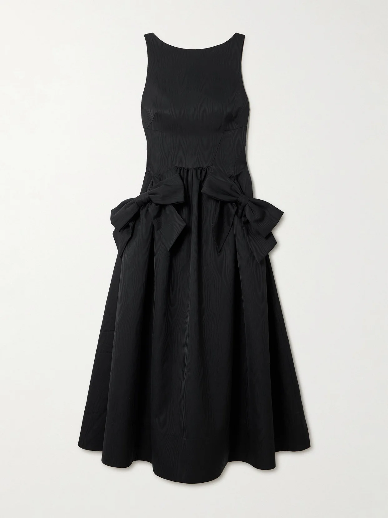 Narcissa Bow-embellished Gathered Moire Midi Dress