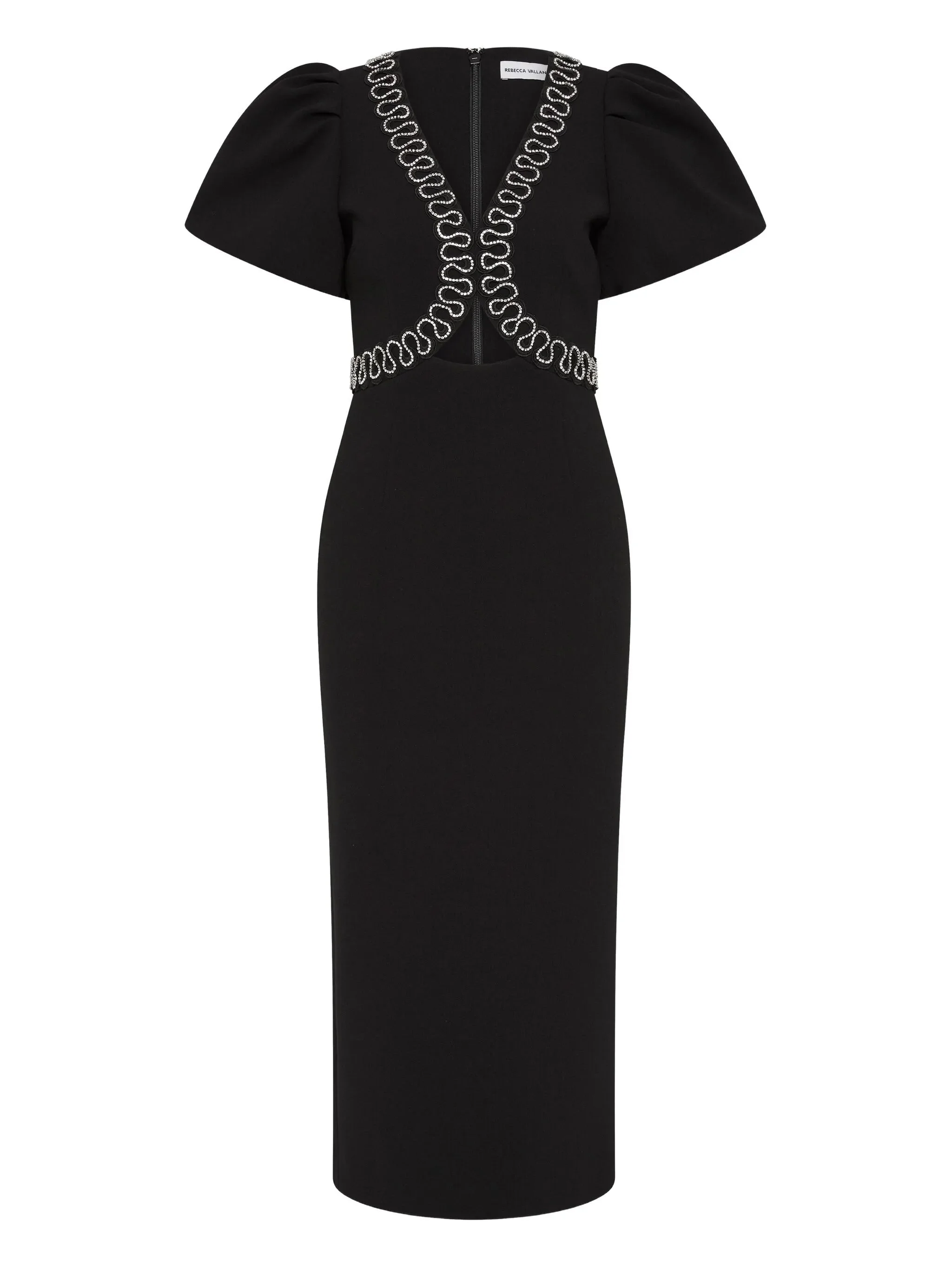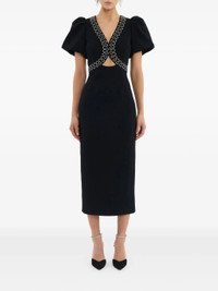 black cut-out detail puff sleeves embellished trim rear zip fastening - Color: BLACK - Made in: China - Designer Style ID: 2504-1247 BLACK Composition and care Polyester: 97.0%, Elastane: 3.0%