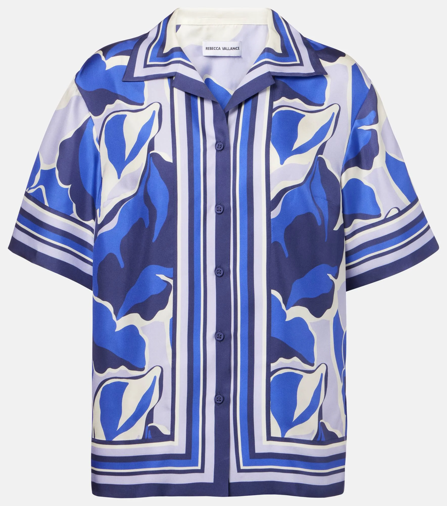 The Paros shirt from Rebecca Vallance is made from pure silk. The design beautifully drapes over the body and features an all-over, multicolored print. Product Details - Material: 100% silk - Care instructions: dry clean - Made in China - Designer color name: Paros Print - Item color: blue - Item number: P01042173 Size & Fit - True to size - For a closer fit, we recommend taking one size down - Dropped shoulders - Designed for a loose fit - Non-stretchy fabric - Falls to the hip - Height of model is 180cm-71" and wears a size UK 6