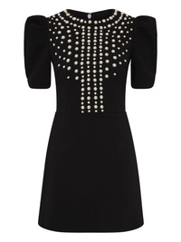 puff-sleeve pearl-embellished mini dress