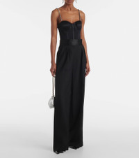 Product Details - Material: 39% wool, 31% polyester, 25% viscose, 5% elastane - Care instructions: dry clean - Made in China - Designer color name: Black - Lining: 100% polyester - Closure: zipper fly, button and hook fastenings - Pockets: side slit pockets, back pockets - Item number: P00993841 Size & Fit - True to size - Non-stretchy fabric - Wide-leg - High-waisted - The model seen in the picture is 178cm-5'10" and wearing a size UK 6