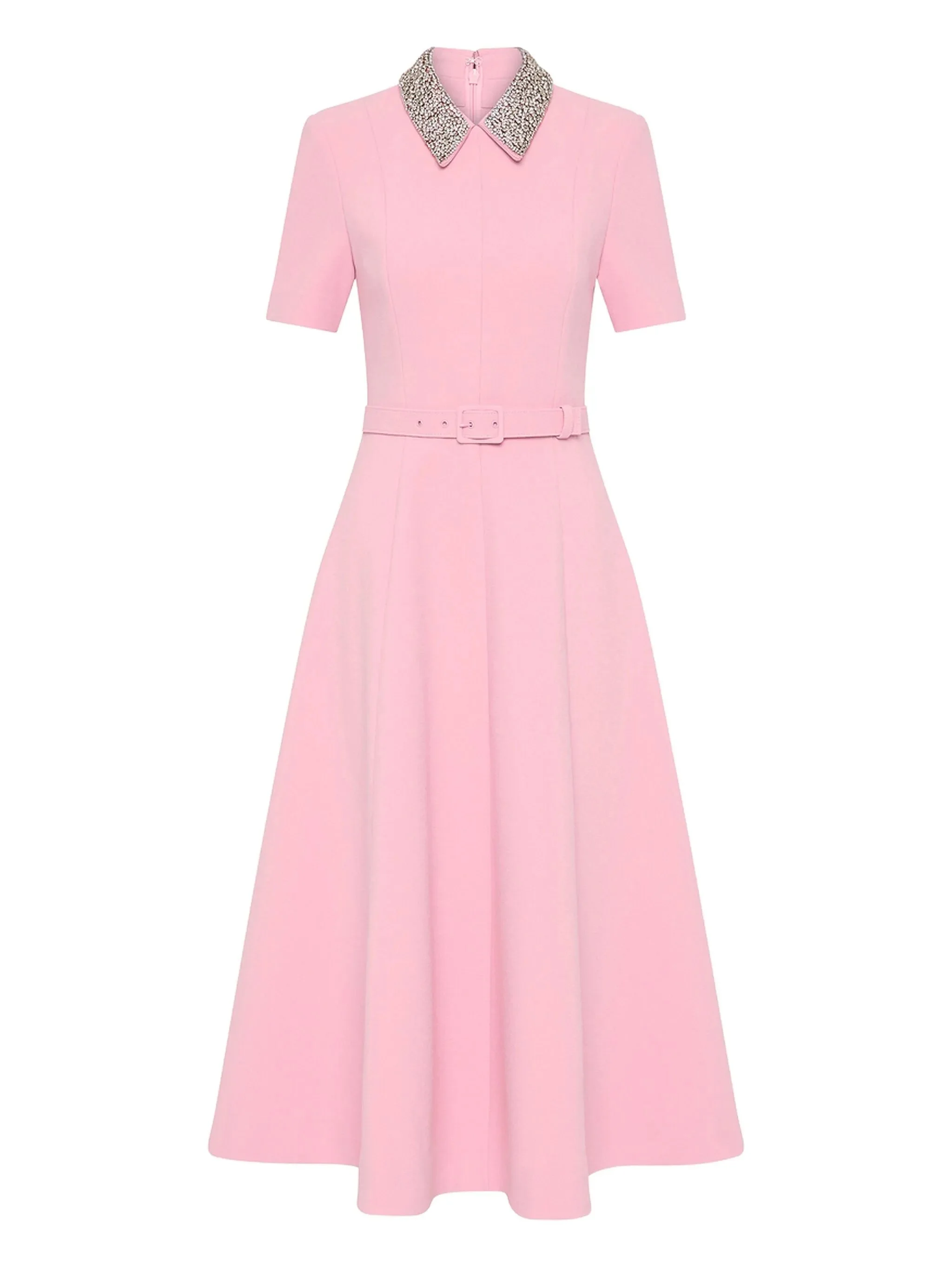 light pink crystal-embellished collar short sleeves belted waist a-line skirt midi length - Color: PINK - Made in: China - Designer Style ID: RVBR-1177 LIPIN Composition and care Polyester: 98.0%, Elastane: 2.0%