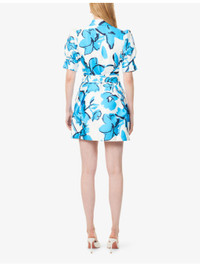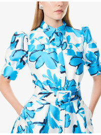 PRODUCT DETAILS - Rebecca Vallance woven mini dress - 100% polyester; lining 97% polyester, 3% elastane - Concealed button fastenings at front - Regular fit, spread collar, puffed short sleeves, split cuffs, two slip pockets at front, pleated at front and back, detachable belt, all-over floral print, all-over satin texture, fully lined, flared hem - Dry clean only - True to size - Size UK 8: length 34in / 88cm - Model is 5ft 10in/1.78m and wears a size UK 8 - Lightweight, slight stretch Ref: R04482195