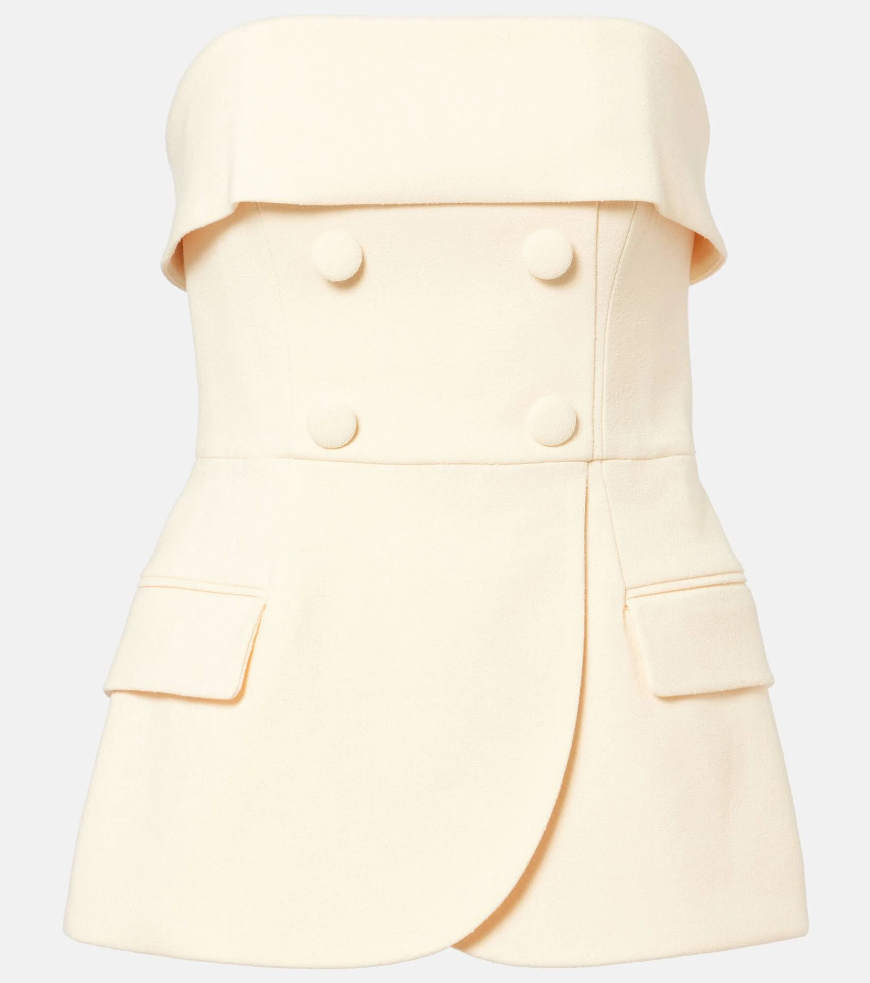 Established as the go-to brand for eye-catching occasionwear, every style from Rebecca Vallance is characterized by glitz and glamour. The Rowan top is a strapless design inspired by classic suiting, complete with a cinched waist and tonal buttons. Product Details - Material: 90% polyester, 9% viscose, 1% elastane - Care instructions: dry clean - Made in China - Designer color name: Cream - Item color: yellow - Closure: concealed zipper, zipped back, hook fastening - Pockets: faux pockets - Item number: P01096304 Size & Fit - True to size - Strapless - Internal boned corset for support - Cinched waist - Non-stretchy fabric - Falls below the hip - The model seen in the picture is 178cm-5'10" and wearing a size UK 6