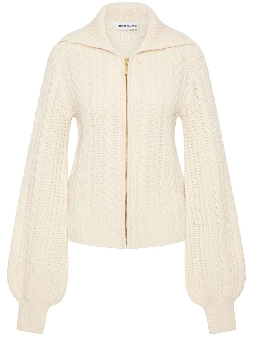 Saylor jumper Highlights - White - Front zip fastening - Cable knit - Spread collar - Ribbed cuffs and hem Imported Composition Merino 90%, Cashmere 10%