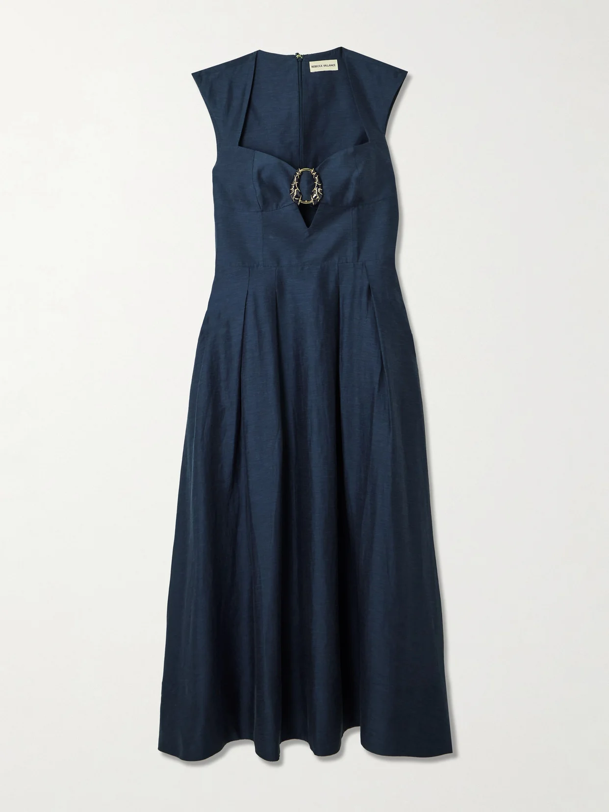 Serenity Embellished Pleated Lyocell-blend Midi Dress