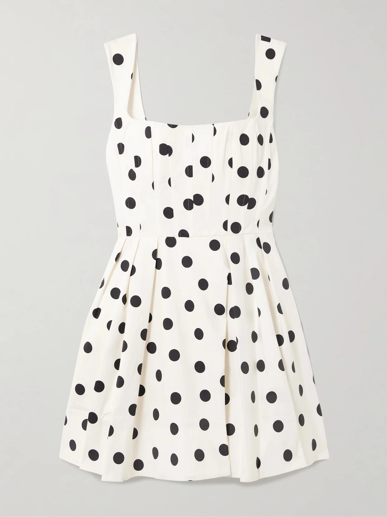 Maisie Pleated Polka-dot Cotton-blend Poplin Mini Dress