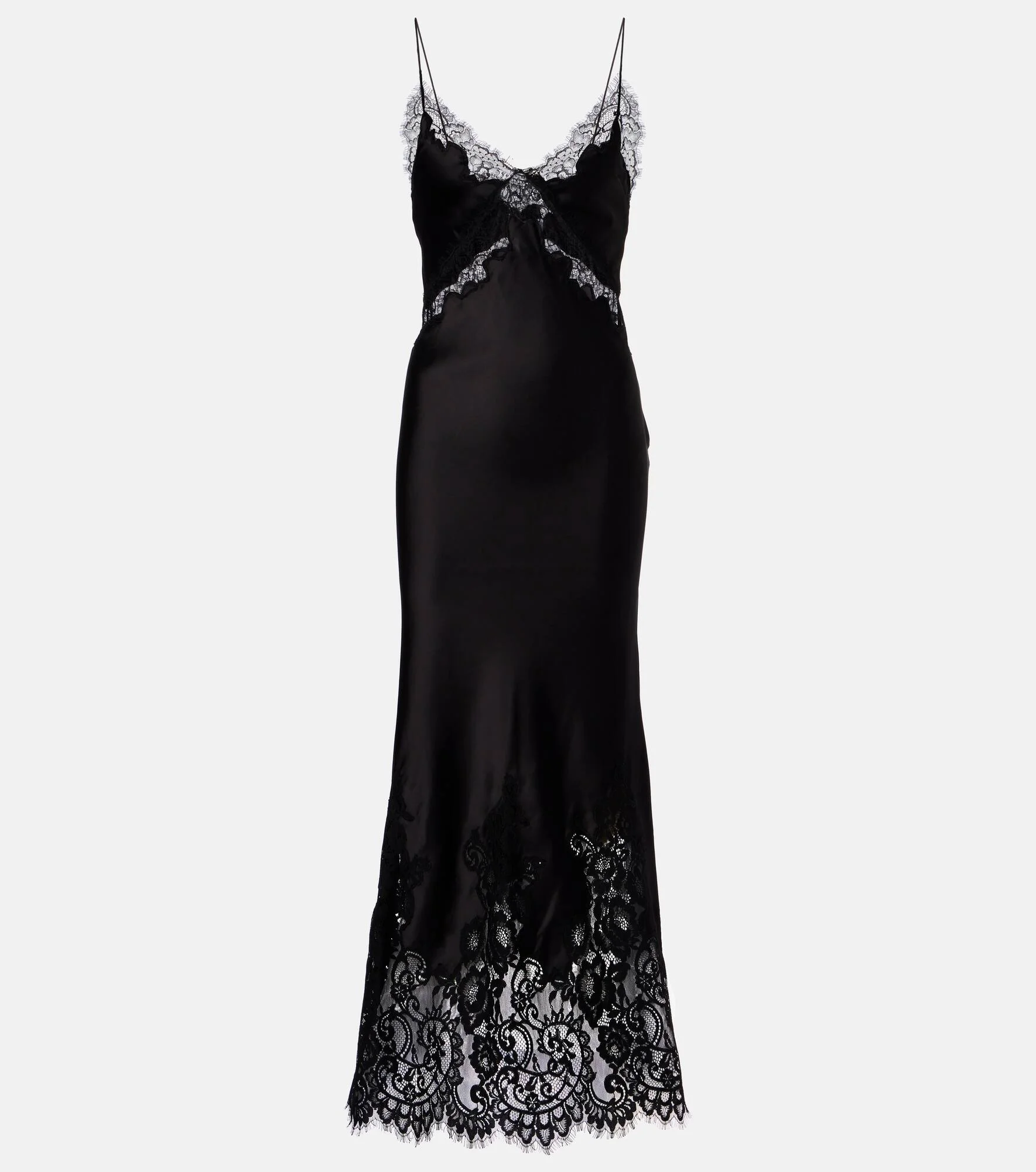 Tamera lace-trimmed satin slip dress