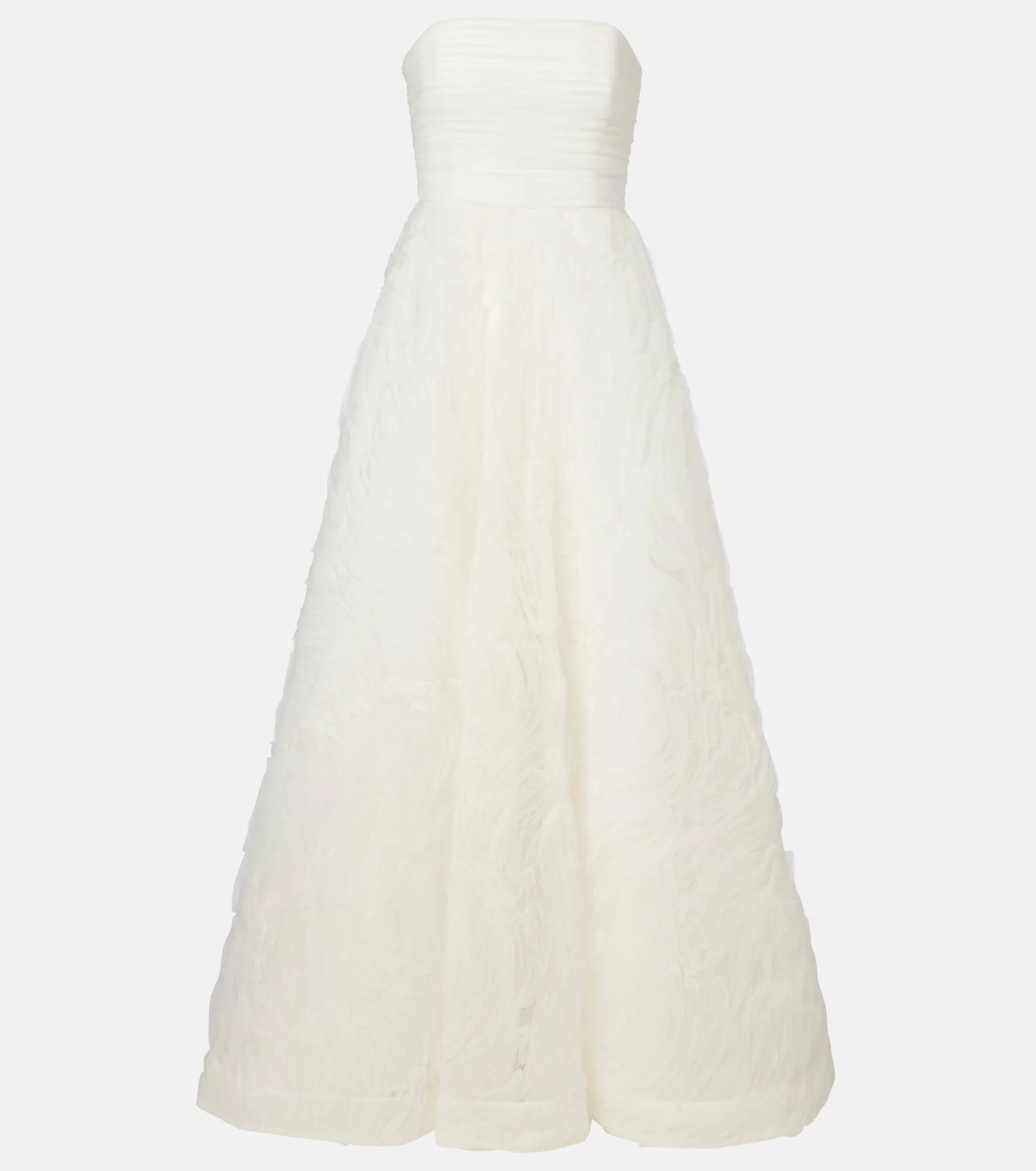Every style from Rebecca Vallance is characterized by glitz and glamour. Shaped with a structured bustier bodice, the Willow bridal gown is expertly crafted from mesh with frothy ruffles at the graceful volume skirt. Product Details - Material: 100% nylon - Care instructions: dry clean - Made in China - Designer color name: Ivory - Item color: white - Lining: 97% polyester, 3% elastane - Lining II: 100% nylon - Material II: 100% nylon - Material III: 92% polyester, 8% elastane - Boning - Closure: concealed zipped back - Item number: P01111835 Size & Fit - True to size - Strapless - Internal boned corset for support - Fitted bodice, loose skirt - Non-stretchy fabric - The model seen in the picture is 178cm-5'10" and wearing a size UK 6
