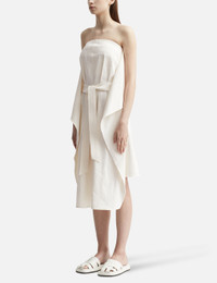 - Recto - Tube Top Dress - Cotton linen construction - Maxi length back wrap tube top dress - Tonal waistbelt detail - Rear zip fastening - Color: Off White - See more Dresses and Clothing SIZING - Model wears size S - Model measures: Height 176cm, Chest 32”/81cm, Waist 23”/59cm,Hip 35”/90cm