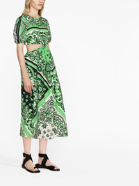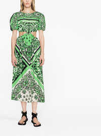bandana-print cotton midi dress RED Valentino displays a youthful spirit with this green-hued midi dress. Cut from cotton poplin, it's defined by an all-over bandana print complemented by cut-outs at the waist and puffed sleeves for a playful touch. Imported Composition Lining: Cotton 100% Outer: Cotton 100% SIZE & FIT Model measurements Height 5 ft 9 in(1.75 m) Bust/Chest 31.49 in(80 cm) Hips 34.05 in(86.5 cm) Waist 24.21 in(61.5 cm) Measurement HIPS 43.3 in(110 cm) LENGTH 50.78 in(129 cm) WAIST 26.77 in(68 cm) Washing instructions Dry Clean Only