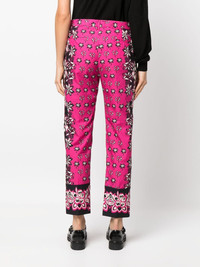 Bandana-print cotton trousers Highlights - Fuchsia pink - Cotton - Bandana print - Belt loops - Slim cut - Concealed front fastening - Two side slit pockets - Two rear welt pockets Imported Composition Lining: Cotton 100% Outer: Cotton 100% SIZE & FIT Model measurements Height 5 ft 11 in(1.8 m) Bust/Chest 31.49 in(80 cm) Hips 35.43 in(90 cm) Waist 24.4 in(62 cm) FittingInformation Designed for a straight-leg fit, these trousers allow for a close fit at the waist and an unrestricted, comfortable fit over the leg Made from a lightweight non-stretch fabric This piece fits true to size – take your usual size Washing instructions Dry Clean Only