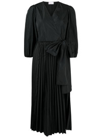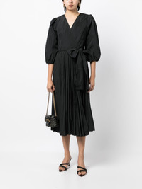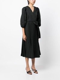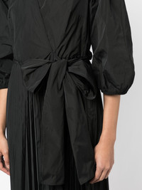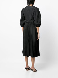 bow-detail pleated dress Highlights - Black - V-neck - Long puff sleeves - Side tie fastening - Fully pleated - Mid-length Imported Composition Polyester 100% SIZE & FIT Model measurements Height 5 ft 10 in(1.77 m) Bust/Chest 31.49 in(80 cm) Hips 35.43 in(90 cm) Waist 25.19 in(64 cm) FittingInformation Designed for a wraparound style that can be adjusted to your preference Made from a lightweight non-stretch fabric This piece fits true to size – take your usual size Washing instructions Dry Clean Only