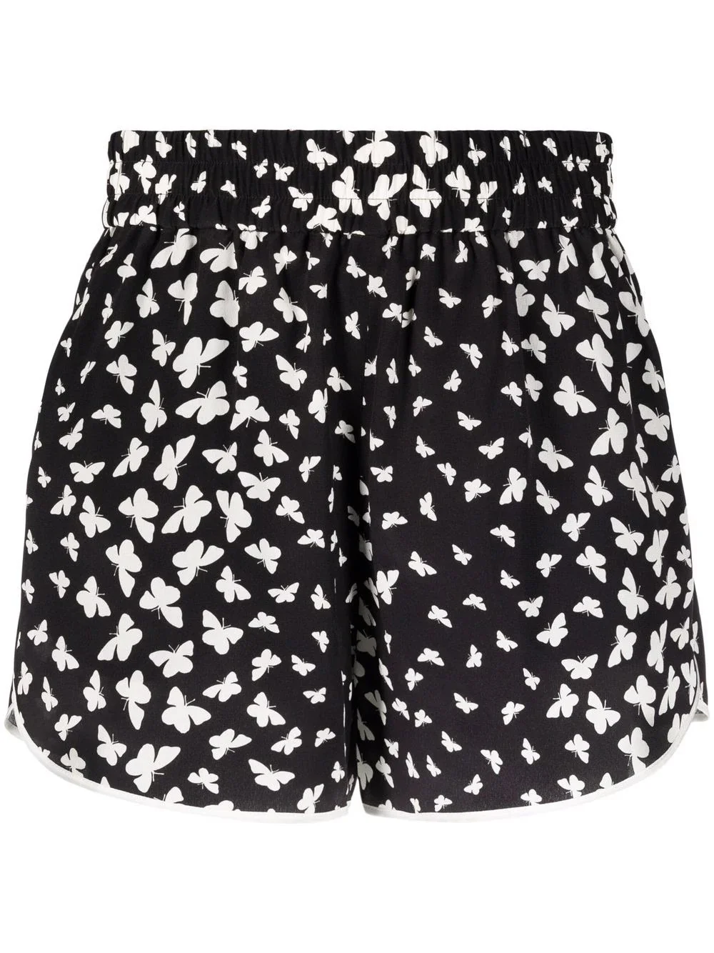 butterfly-print silk shorts Printed with an all-over butterfly motif, these RED Valentino shorts are crafted in a delicate silk fabrication. The design showcases a sports-inspired touch, accented with a contrasting trim and side stripe detailing. Imported Composition Outer: Silk 100%, Polyester 100% Lining: Acetate 64%, Polyester 36% Washing instructions Dry Clean Only