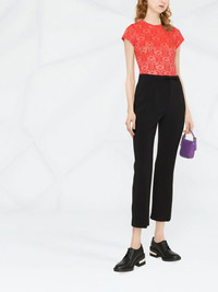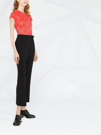 cropped straight-leg trousers RED Valentino presents these trousers for SS22. Cut to a cropped leg in a neutral colourway, this pair demonstrates the label's contemporary and versatile aesthetic. Imported Composition Polyester 93%, Elastane 7% SIZE & FIT Model measurements Height 5 ft 10 in(1.78 m) Bust/Chest 31.49 in(80 cm) Hips 35.43 in(90 cm) Waist 24.4 in(62 cm) FittingInformation This piece fits true to size. We recommend you get your regular size Cut for a slim fit Made with a mid-weight stretch fabric Washing instructions Dry Clean Only