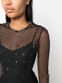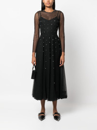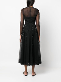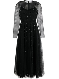 crystal-embellished tulle midi dress Highlights - Black - Semi-sheer construction - Tulle overlay - Round neck - Long sleeves - Crystal embellishment - Stud detailing - Flared skirt - Pleated skirt - Concealed rear zip fastening - Partial lining Imported Composition Lining: Polyester 100% Outer: Polyamide 100% SIZE & FIT Model measurements Height 5 ft 11 in(1.8 m) Bust/Chest 30.7 in(78 cm) Hips 35.03 in(89 cm) Waist 24.4 in(62 cm)