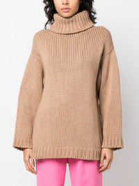Desert chunky-knit jumper camel brown wool-cashmere blend chunky knit ribbed-knit edge roll neck open back rear tie fastening long sleeves straight hem Imported Composition Polyamide 36%, Wool 26%, Viscose 26%, Metallic Fibre 7%, Cashmere 5% SIZE & FIT Model measurements Height 5 ft 9 in(1.76 m) Bust/Chest 31.88 in(81 cm) Hips 35.43 in(90 cm) Waist 24.8 in(63 cm) Washing instructions Machine Wash